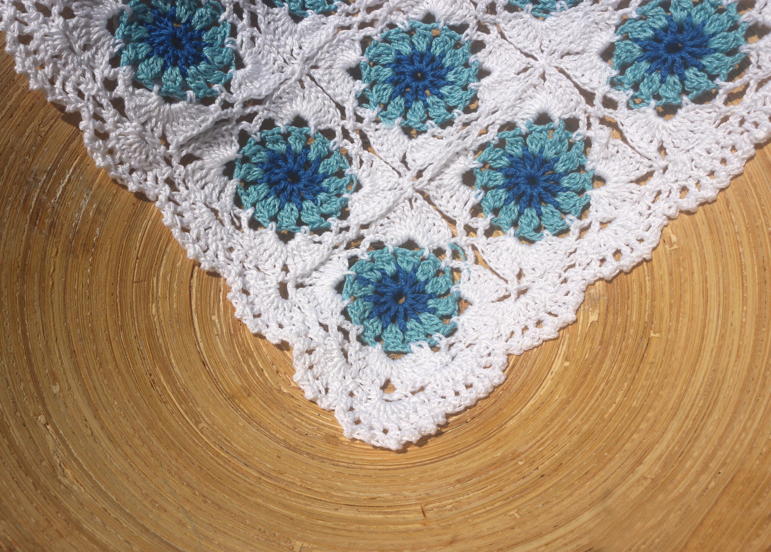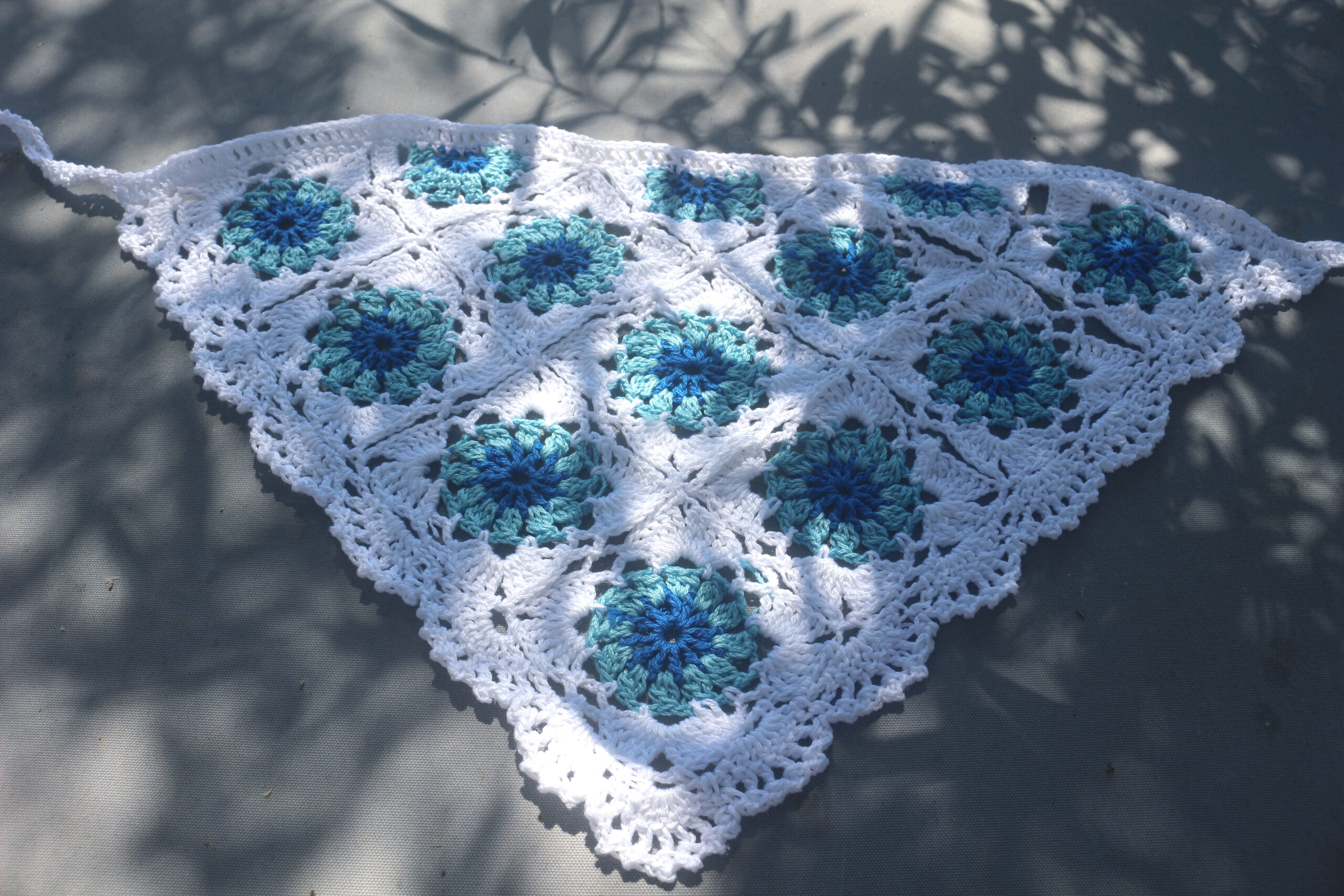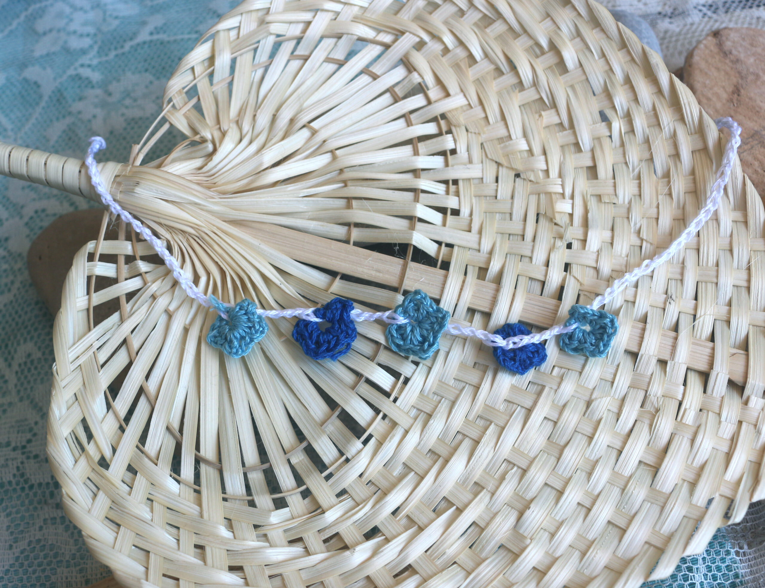 Χειροποίητη μπαντάνα πλεγμένη με απαλά, ποιοτικά νήματα, σε αποχρώσεις εμπνευσμένες από το καλοκαίρι. Το βαθύ γαλάζιο της θάλασσας, το φωτεινό μπλε του ουρανού και το λευκό του αφρού των κυμάτων. Το χρώμα αλλάζει απαλά από τόνο σε τόνο, δημιουργώντας ένα αρμονικό και ρομαντικό εφέ, σαν μια θαλασσινή αύρα που χαϊδεύει τα μαλλιά. Ελαφριά, δροσερή και άνετη, φοριέται εύκολα σε καθημερινές εμφανίσεις, παραλία, φεστιβάλ ή ταξίδια. Ιδανική για να συγκρατεί τα μαλλιά με στυλ ή απλώς για μια καλοκαιρινή πινελιά που θυμίζει διακοπές.