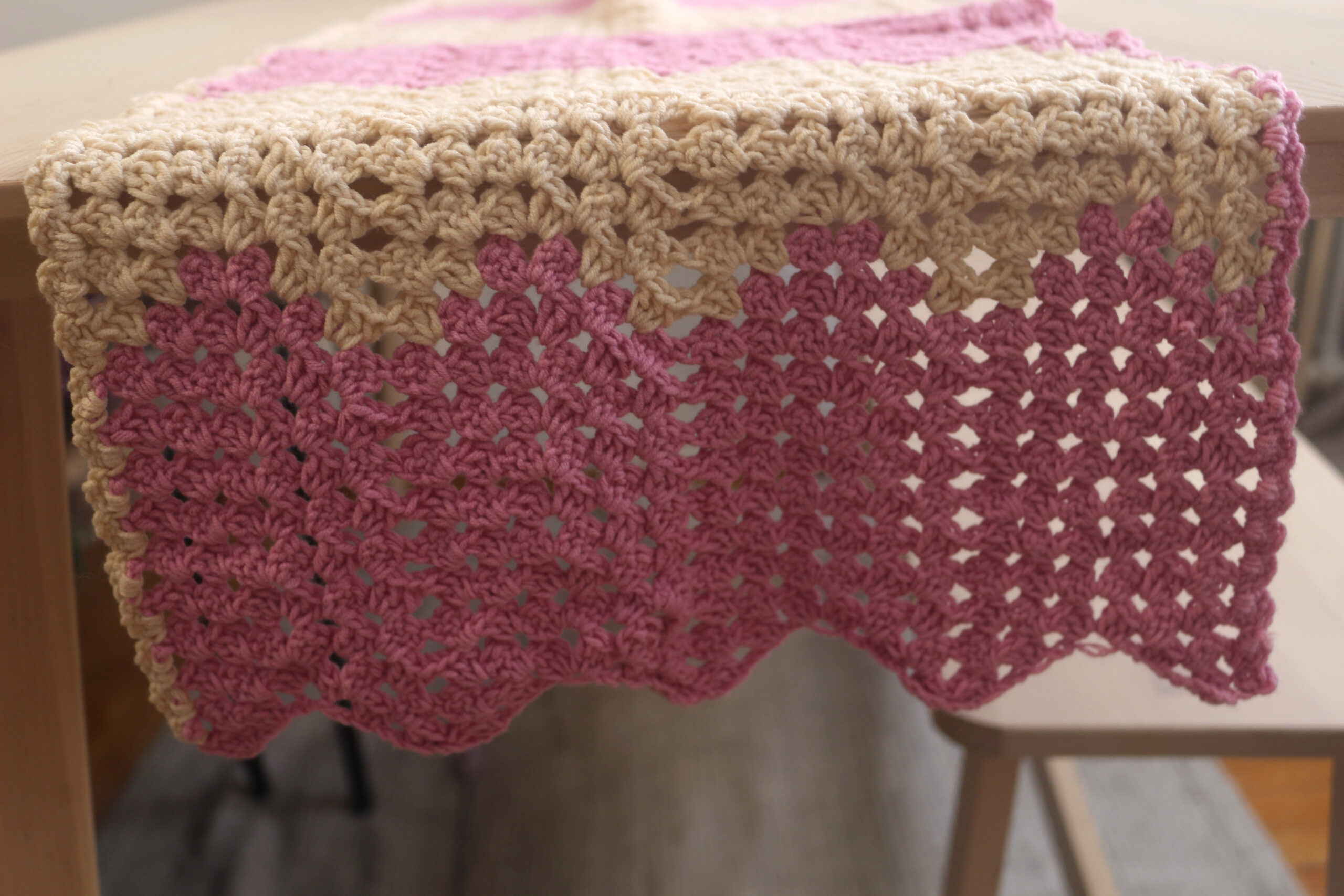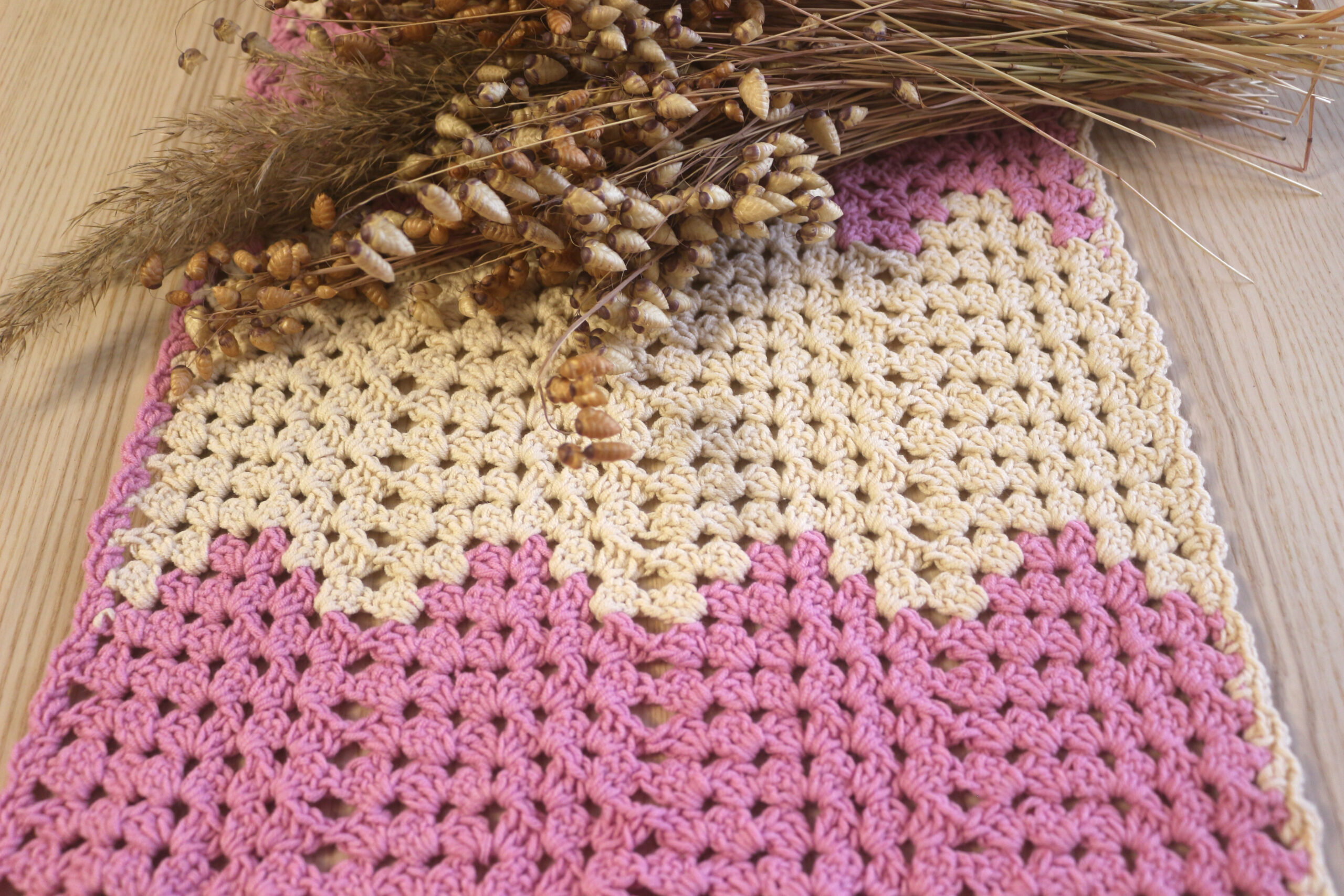 Χειροποίητο πλεκτό ράνερ σε ζεστό μπεζ και ροζ χρώμα. Ελαφρύ, αέρινο και με καλοκαιρινή αύρα, προσθέτει ρομαντισμό και φυσική φρεσκάδα. Ιδανικό για διακόσμηση τραπεζαρίας, ή εξωτερικού χώρου.